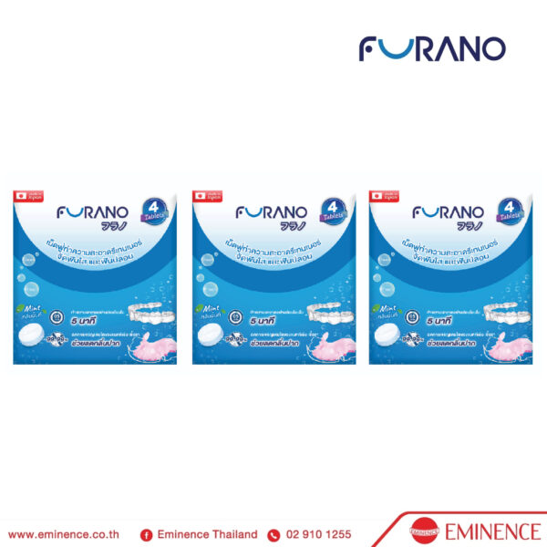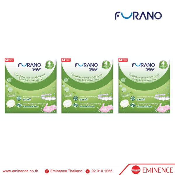 Furano เม็ดฟู่ทำความสะอาดรีเทนเนอร์ และฟันปลอม แบบซอง 4 เม็ด (กลิ่น Mint / Rose Romance / Green Tea)